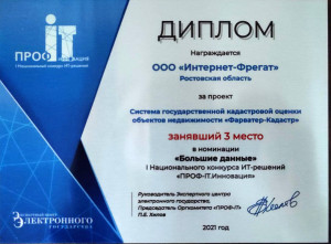 Система государственной кадастровой оценки объектов недвижимости «Фарватер-Кадастр» вошла в число победителей I Национального конкурса ИТ-решений «ПРОФ-IT.Инновация» в номинации «Большие данные»
